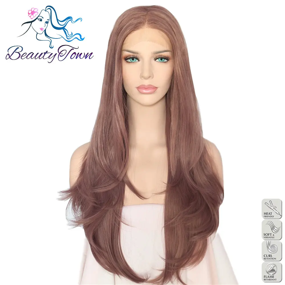 Us 34 3 30 Off Beautytown Light Coffee Color Masquerade Cosplay Blogger Daily Makeup Synthetic Lace Front Wedding Party Wigs For Girls Gift In