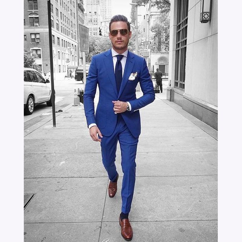 Bleu Royal Slim Fit Hommes Costume De Mariage Buy Costumes Ajustés