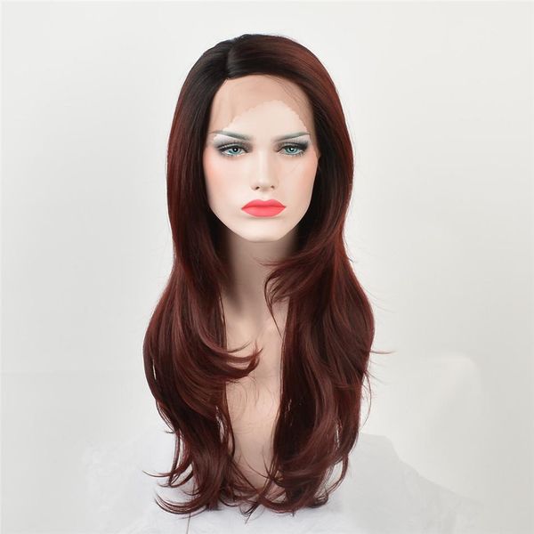 Kabell Fashion Lace Front Wigs Black Root Deep Red Hair With Two Shades Of Wavy Hair Big Wave Hairstyle Wigs African American Fashion Wig China Lace