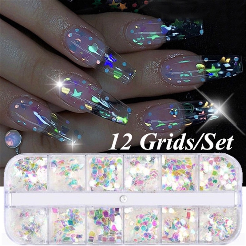 12 Gram Set Nail Art Glitter Sequin Serpihan Holographic Campuran Bentuk 3d Slice Manicure Decor