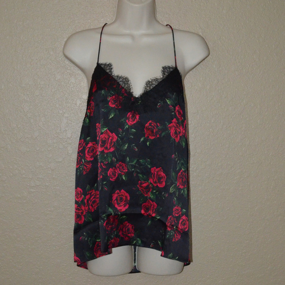 Cami Nyc Racer Charmeuse Cami Red Rose Print