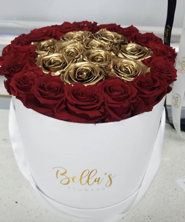 Preserved Roses Red With Gold In New York Ny Roses In A Box Nyc