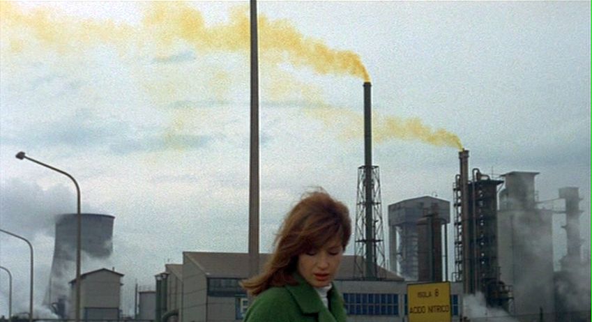 Relaying the plot of "Red Desert" is going to be hard for me, because to me there really wasn't much of a plot here and what I took away from the film was more of an emotional experience than anything else. Giuliana (Vitti) has recently been released from the hospital following an attempt to commit suicide. The film opens with images of factories and smoke stacks and as the film progresses, we gather that there must be some sort of factory strike going on. Giuliana lives with her husband, Ugo (Chionetti) and their son. Ugo is a factory director and when his colleague Mr. Zeller (Harris) comes to town to negotiate a deal, he and Giuliana form a connection, although as far as I can tell the connection is never validated and takes the form of friendship and sexual as the film progresses. Giuliana still isn't 100% stable and still seems to be in a deep state of depression as she ponders things like the meaning of life and worries about seemingly nonsensical things.